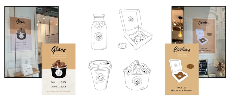 L’univers graphique s’est ensuite décliné sur plusieurs supports imprimés pour habiller le lieu de vente et communiquer autour de la marque :